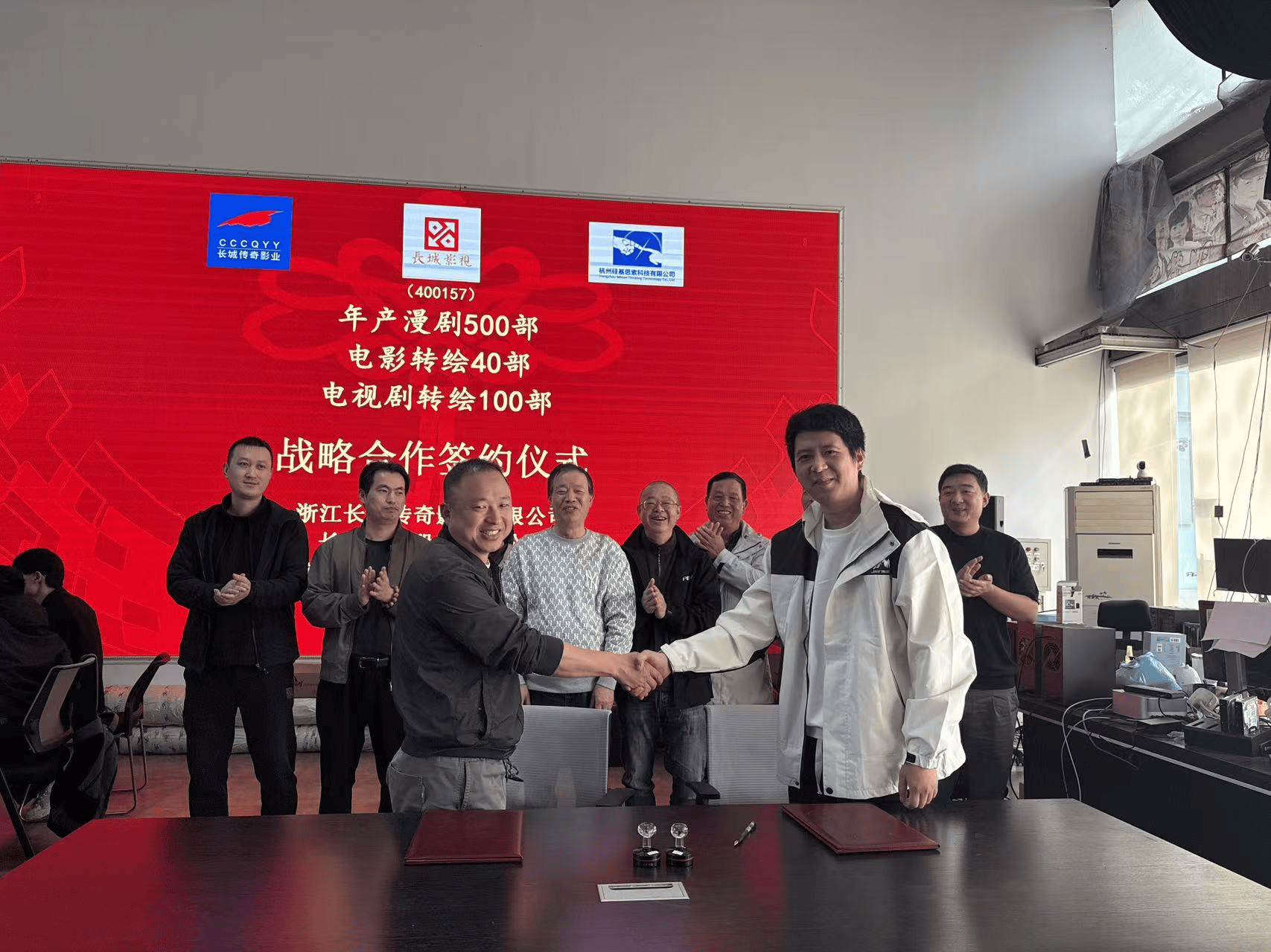 2025 年 11 月 3 日,深耕影视领域多年的浙江长城传奇影业有限公司(简称 “长城传奇影业”),与 AI 数字技术领域新锐杭州硅基思索科技集团公司(简称 “硅基思索”)正式签署战略合作协定。双方以 “人无我有” 的核心优势 —— 首批 40 部电影 IP 授权 AI 转绘漫剧为突破口,同步推进抖音等平台合作、核心人才招聘与外部战略投资引入,为传统影视 IP 与 AI 技术融合开辟全新路径。