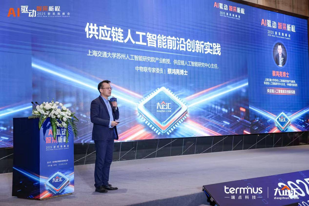 12月5日,由杭州端点网络科技有限公司(以下简称“端点科技”)主办的2025新采购峰会在杭州圆满落幕。峰会以「AI驱动,智采新程」为主题,汇聚数百家大型企业集团,链接众多采购与供应链管理者,以及供应链生态领域的重量级嘉宾,共同探寻AI在供应链中从蓝图到现实的关键落地路径,思辨智能技术驱动供应链从效率工具迈向战略价值蓝图的新未来。