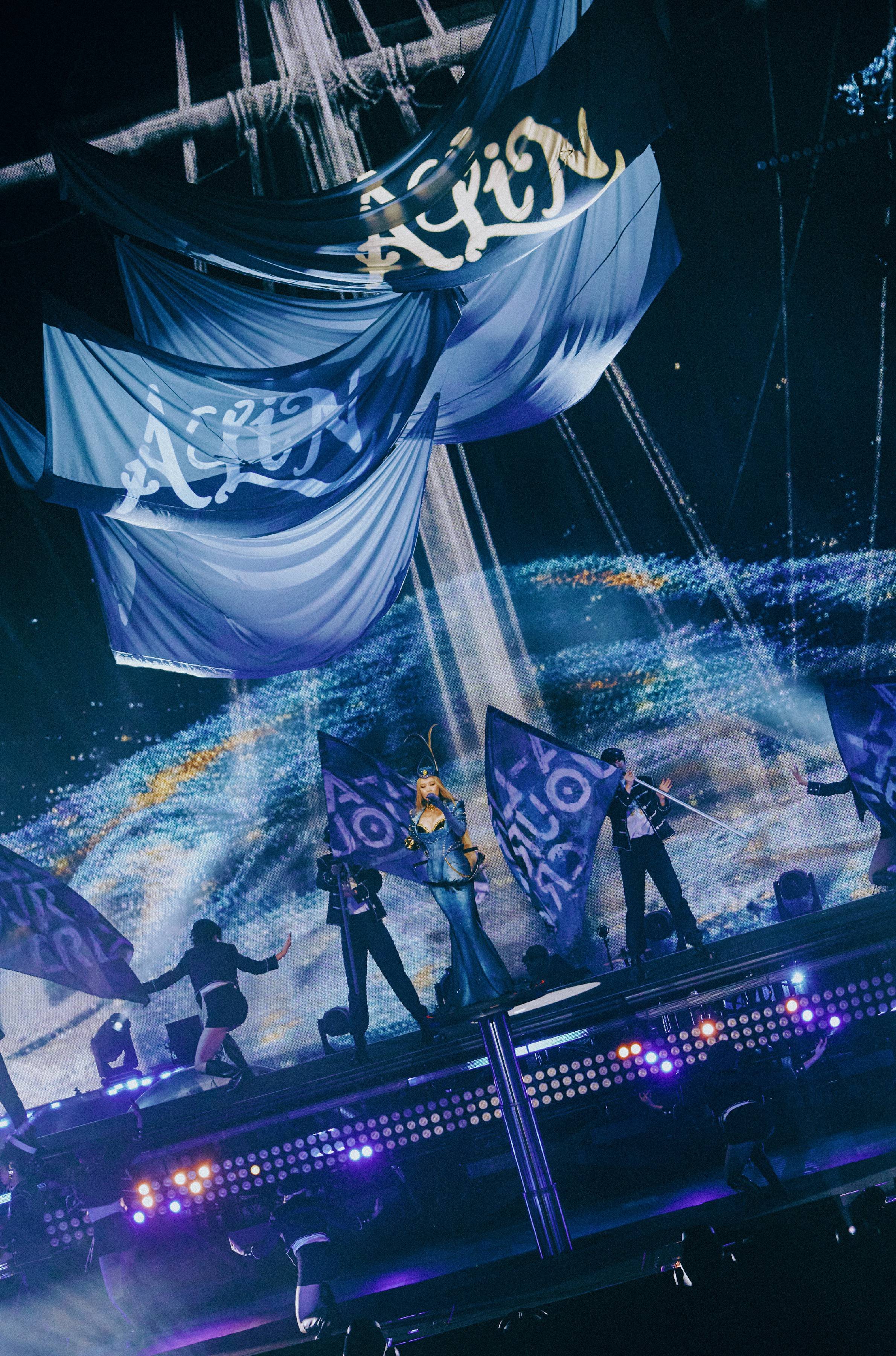 A-Lin身着WINDOWSEN 原创高定亮相厦门,海蓝色的长裙搭配利落修身剪裁,令人眼前一亮,与开场歌曲《海洋之心》完美呼应,将气氛瞬间点燃,引发全场欢呼。第一章节唱罢,帷幕缓缓合毕,巨幅LED映出波光粼粼的海面,浮现一段字幕“海是我的第一个歌迷。”简单一句话,瞬间拉近了与这座海滨城市的距离——不仅是她傍海而生的成长背景,更象征着她如海洋般广阔的音乐世界,出道二十年以来,每一位歌迷,都汇入了这篇音乐的“海”,成为她忠实的听众。当演出行至中段,她更是深情告白,一度哽咽:“很谢谢你们的世界里有A-Lin,谢谢你们陪我走过这二十年的音乐旅程。”种种真情流露,令台下无数歌迷为之动容。